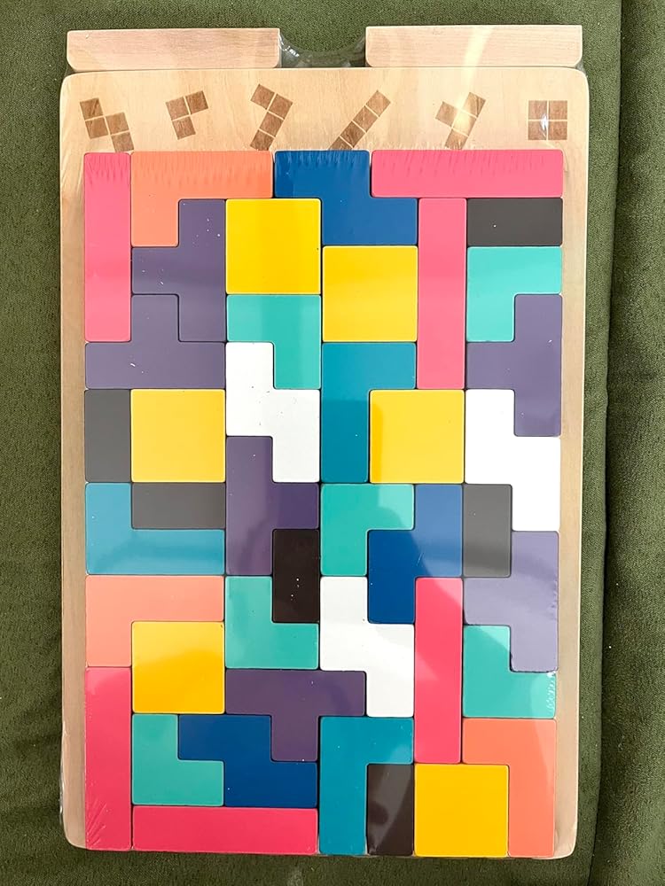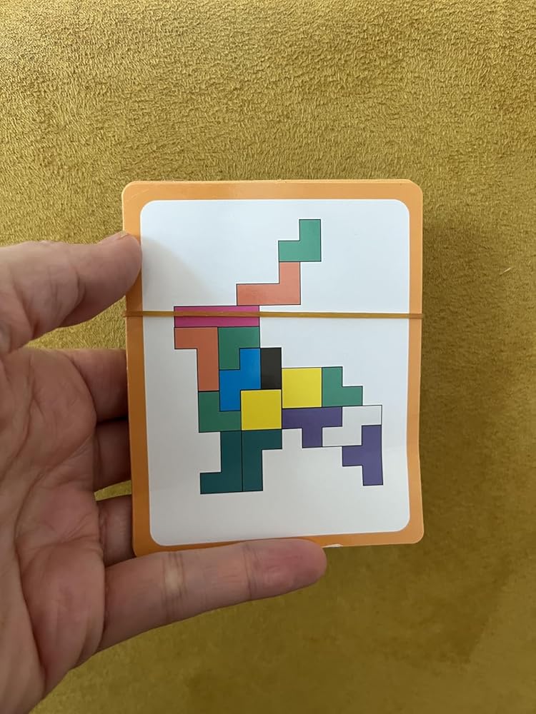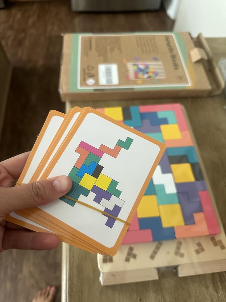 I love this Wooden stacking Puzzle Toy! Promotes critical thinking. Some people cannot even comprehend how to solve problems and this Toy would certainly improve anyone's thinking skills just playing with this product! It comes with a few cards with more simple design ideas to follow but I find it more challenging to just try to fit all the pieces into the board without any holes left. Easy enough for any child choosing to make a pretty design but can grow alongside the child's interest to do more challenging things of their own creativity! An excellent toy I highly recommend for any age!